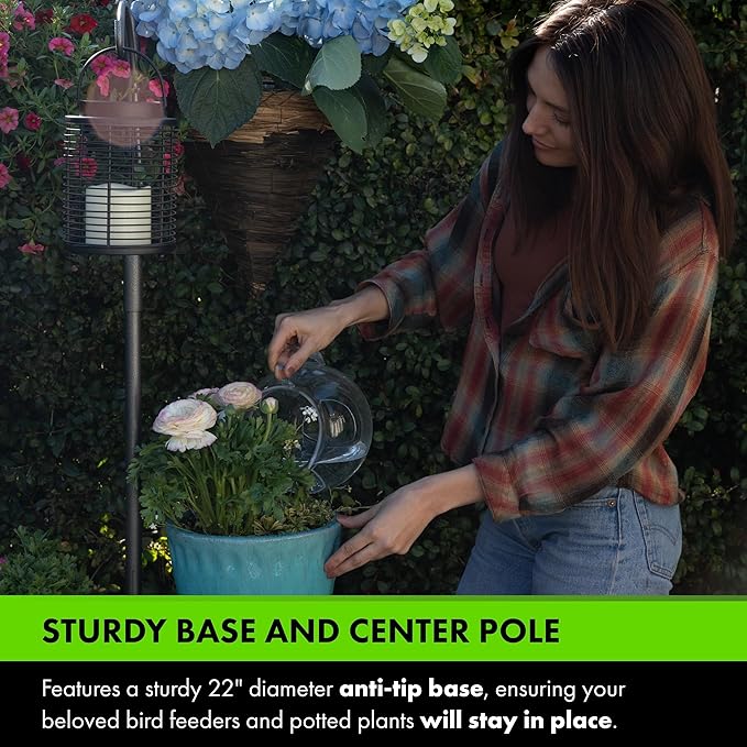 - Adjustable & Safe Stand: Sturdy base and center pole ensure that your plants and bird feeders stay in place; plant hangers and rings can be adjusted