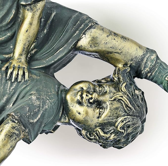 - OUTDOOR STATUE: Finely sculpted detail of girl jumping over boy statue looks great anywhere in your outdoor space.