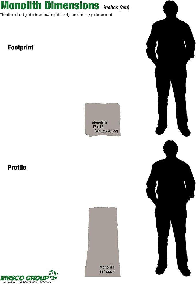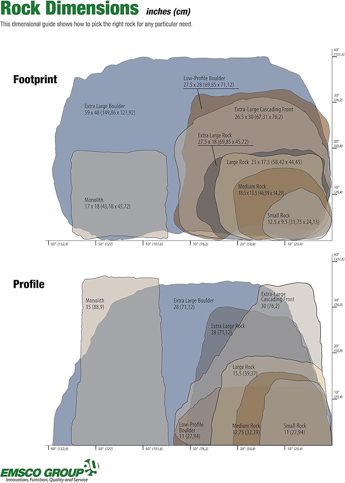 - Overall dimensions: 35"x 16" x 17" (HxLxW). Review the rock dimensions photo showing variations in both height and overall footprint