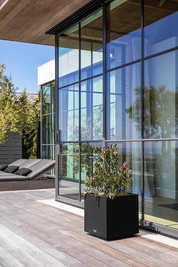 Veradek Block Series Cube Plastic Planter - Large Square Planter for Indoor or Outdoor Patio/Garden | Durable All-Weather Use with Drainage Holes | Modern Décor for Tall Plants, Trees, Flowers