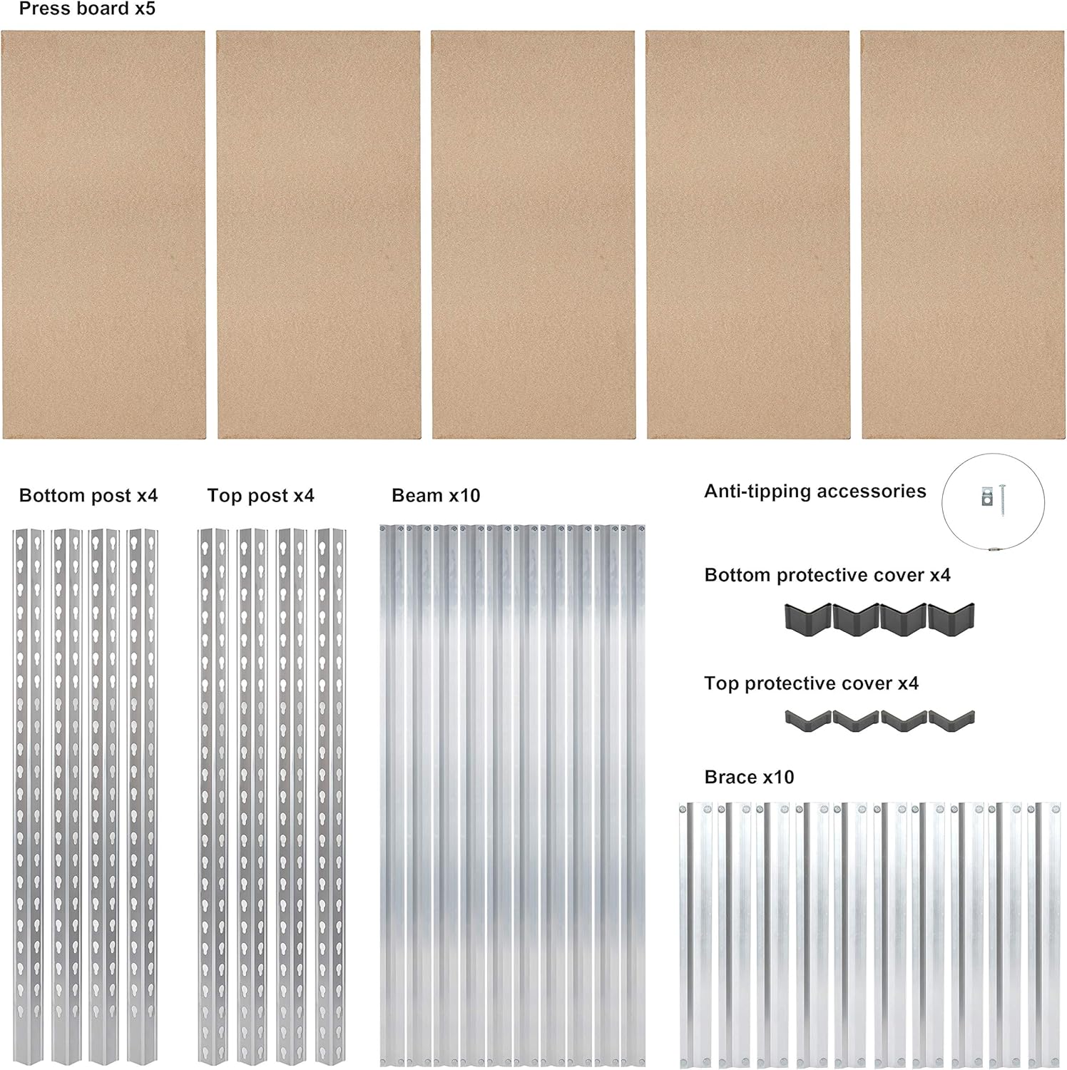 Amazon Basics 5 tier, Medium Duty Storage Shelving Double Post Press Board Shelf, Aluminum, 48 x 18 x 72
