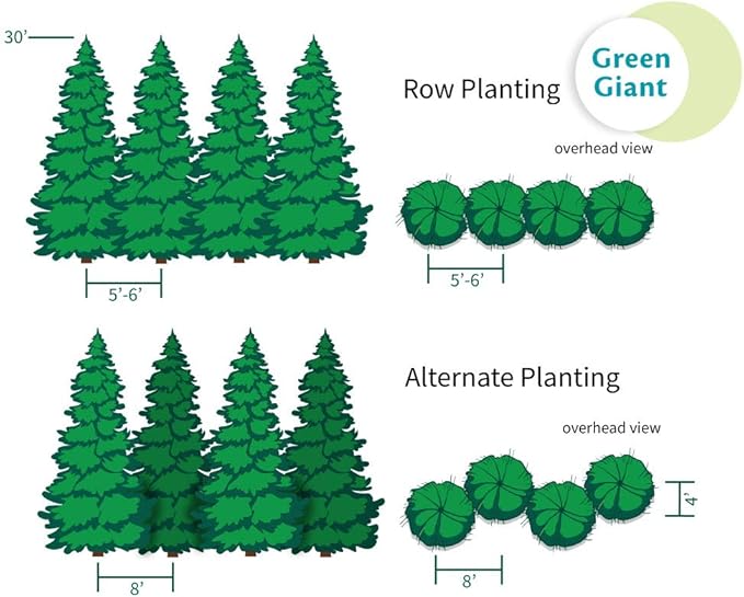 - Need a privacy screen fast? Thuja Green Giants are the answer. These evergreens sprint skyward at an impressive 3-5 feet per year once settled, quickly transforming your space into a lush, private oasis. These giants are a dream for busy gardeners. Plant them in a straight line or a staggered row; either way, they'll provide that perfectly uniform, classic look without any pruning needed.