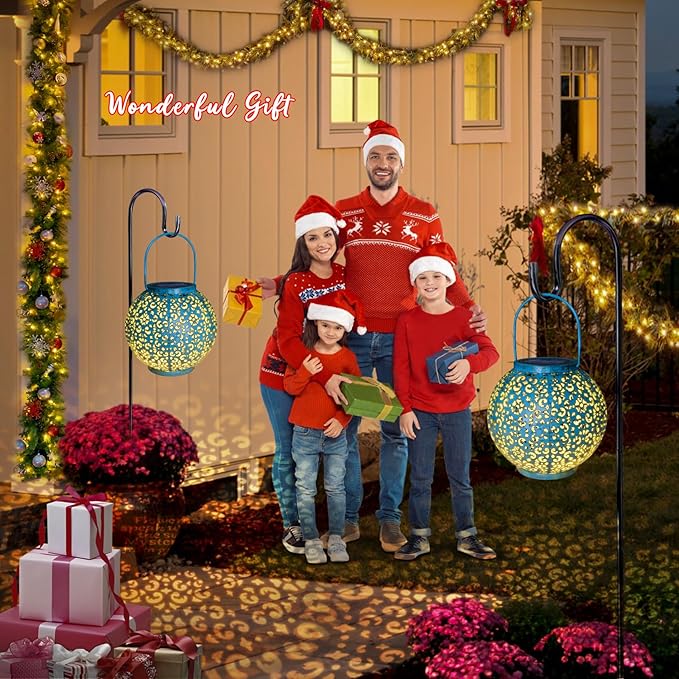 Homeimpro Solar Big Lantern Outdoor Waterproof Garden Gifts Mom, Metal Table Lights for Patio, Yard Art, Mothers Day Bithday Gifts for Women Men(1Pack, Teal Blue)