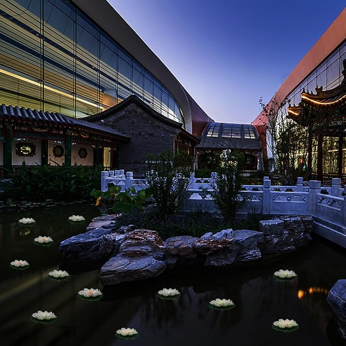 - Exquisite design, how lovely the artificial LED lotus looks in the pond. It can play its charm in your swimming pool, pond, Diwali, bachelor party, fish tank, bathtub, garden, fountain or outdoor wedding.