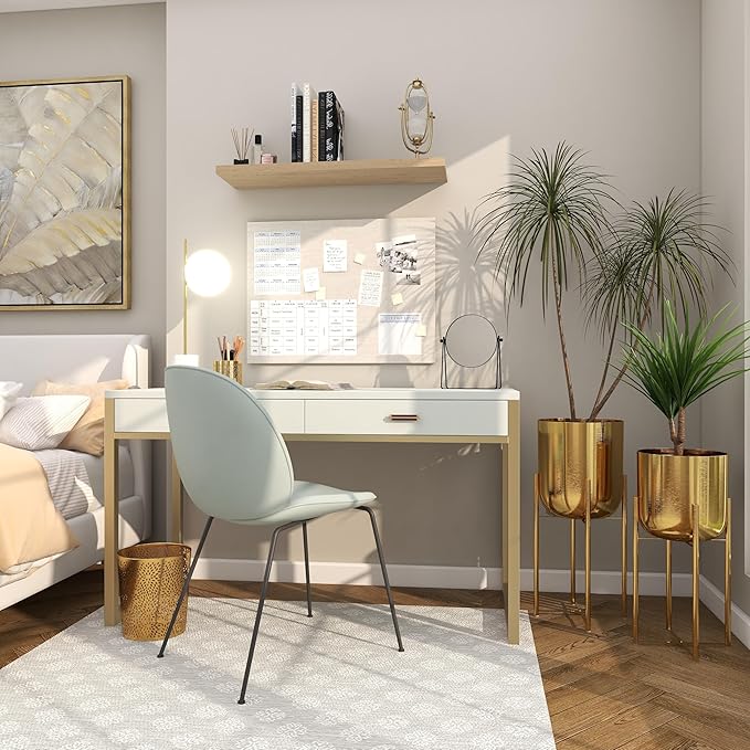 - 2 LARGE SIZE PLANTERS FOR INDOOR PLANTS: Each gold metal planter measures 11.0L x 11.0W x 22.0H , 10.0L x 10.0W x 19.0H inches, and collectively weighs 6.8 lbs