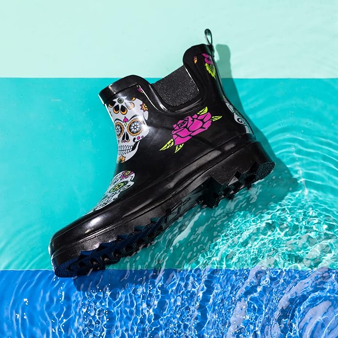 • NATURAL RUBBER CONSTRUCTION: When the wetness tries to sneak in, our cute rain shoes shut it out with a highly water-resistant, built-to-last design. They also have a rugged, chunky, and deep tread to keep you steady in slippery conditions.