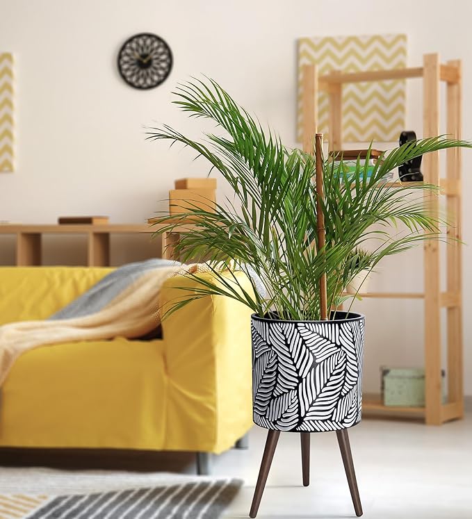 - What’s included: planter pot with drainage hole, drainage plug, set of stand – 3 solid wooden legs.