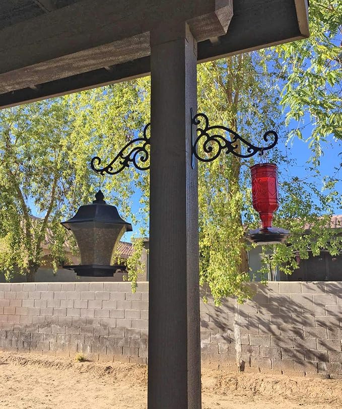 2 Pieces 8-Inch Outdoor Decorative Iron Wall Hooks for Hanging Lanterns Indoor Plants Hummingbird Feeders, Black