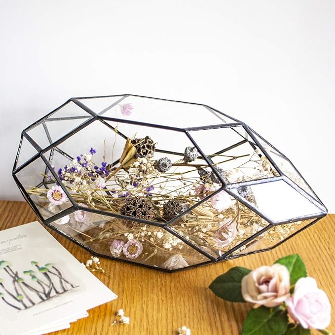 Ferrisland Handmade 10" Large Glass Terrarium Irregular Geometric Planter Indoor Air Plants Holder Window Balcony Display Succulent Flower Pot, Black