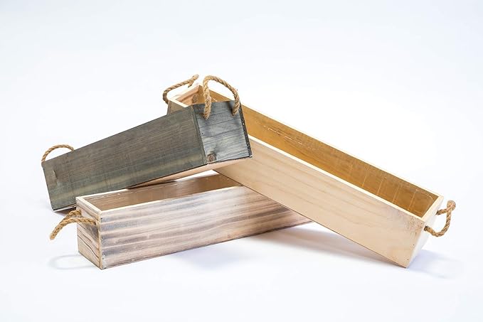 20" Rectangular Rustic Wood Planter with Handle and Plastic Liner l Rustic Barn Wood l Country Style, Home and Wedding Decorations, Garden Ornaments (20x4 w Handle Set of 2, Natural)