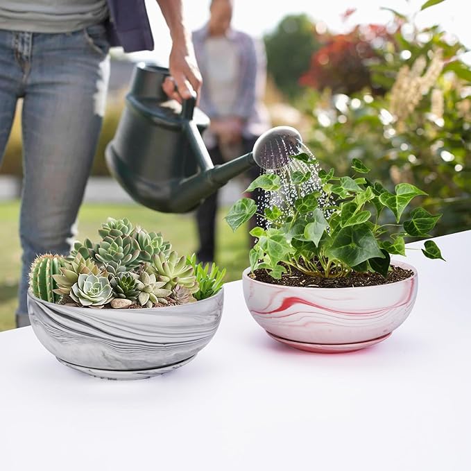 - Carefully designed size: 8in diameter x 3in height pot, 6in marble tray - provides enough space for plants