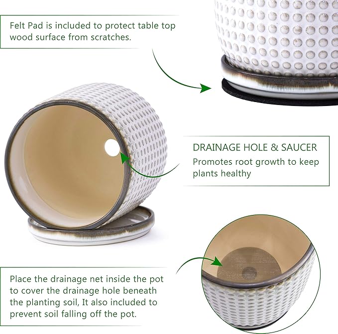 - >> Hassle-Free replacement or refund if any damage or issues with the package or planter pot and saucers. Quick and satisfying resolution.