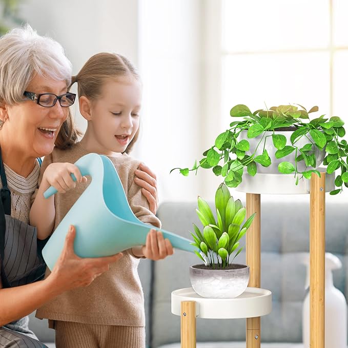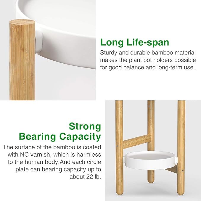 - 🌷【Made of 100% solid bamboo】Especially durable and sturdy. The 3 round plant pots are made of carbon steel, which is more advanced and sturdy than plastic ones, making each circle plate more anti-rust, easy to clean, better bearing.