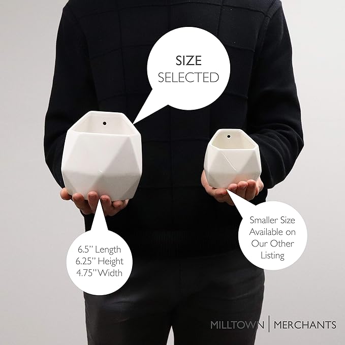 - MODERN COMPACT DESIGN - The versatile design of the Milltown Merchants Ceramic Wall Planters allows for them to be wall mounted or stand upright on a shelf or desk. The removable drainage plug accommodates both real and artificial plants. It also makes a great holder for pens, pencils, and other accents in a home office.