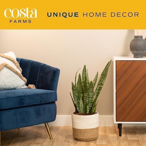 Costa Farms Live Snake Plant, Sansevieria, Easy Care House Plant in Modern Decor Pot, Houseplant in Potting Soil Mix, Succulent Plant Gift for Housewarming, Office and Home Decor, 2-3 Feet Tall