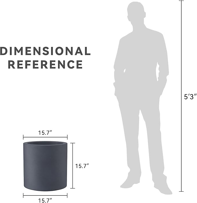 Kante 15.7" Dia Round Concrete Planter, Modern Style Large Cylindrical Plant Pot with Drainage Hole and Rubber Plug for Indoor Outdoor Patio, Charcoal