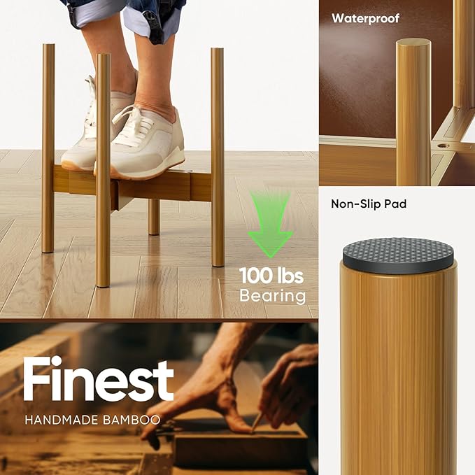- 【Awesome Addition to Room Decor】The bamboo and wood with simple texture and beautiful color could blend well with your furniture style; Our mid century modern plant stand will improve the decor of your living room dining room bedroom office balcony and more
