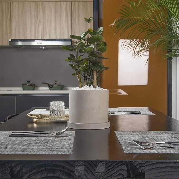 Ekirlin 9 Inch Flower Plant Pot Indoor - Grey Cement Garden Planter Concrete Planter with Drain Hole Saucer, Modern Succulents Containers for Home Decor, Office & Outdoor