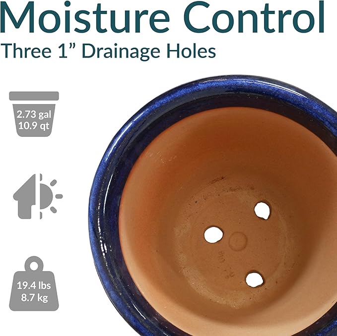 - LARGE SIZE FOR GROWING PLANTS: The large plant pot features a spacious top diameter and 2.73-gallon soil capacity that provides ample space for plants to grow. The planter has a 15" outer top diameter (12.75" inner diameter) x 8.5" outer base diameter (6" inner base diameter) x 12.5" H outer (11.5" H inner) and weighs 19.4 lbs.