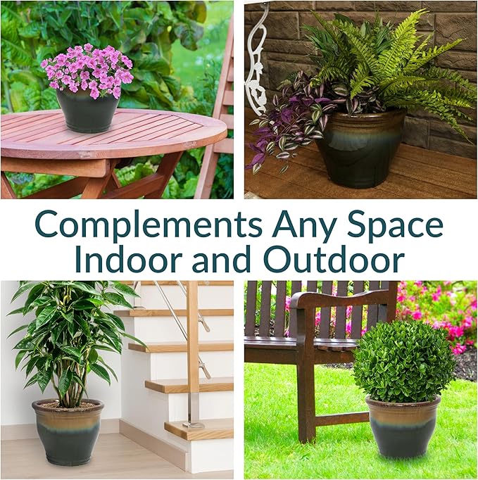 - DESIGNED FOR BEAUTY AND DURABILITY: This outdoor plant pot is crafted with a rich, hand-painted glazed finish that is kiln-fired for a classic, shining appearance. Subtle variations in color highlight the artisanal glazing process, making each piece truly unique. The durable ceramic construction offers natural UV and frost resistance, while its heavy weight adds stability to outdoor arrangements, keeping the planter upright in windy conditions.