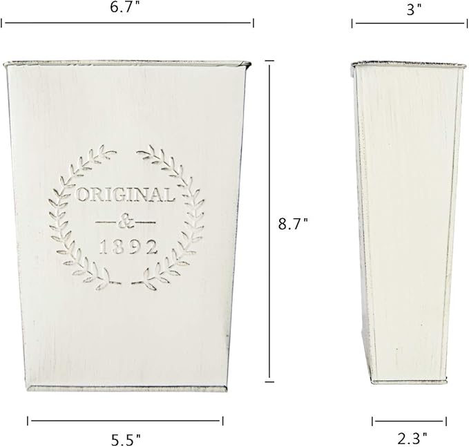 - ✅METAL TIN WALL VASE:Farmhouse wall decor style hanging wall planters are made of high quality metal features an antique finish.Farmhouse wall planter, use to accent other pieces in homes such as the rustic style of a wall clock or wooden plaque.Galvanized wall decor is sure to make the perfect gorgeous rustic decoration addition to any room in your home,deck,or garden or indoors in your kitchen,living room, bedroom, dining room, or bathroom. Suitable for indoor and outdoor use.