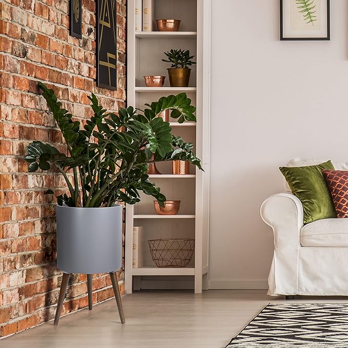 D'vine Dev 14 Inch Planter Pot with Stand, Mid-Century Tall Plant Pot with Legs for Indoor Plants, X-Large, Grey, 88-O-D-3