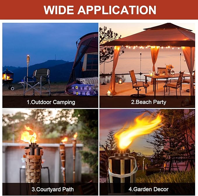 - FOR ALL YOUR OUTDOOR NEEDS: Whether you're hosting a backyard barbecue, enjoying a quiet evening on the patio, or creating a cozy ambiance for a special occasion.【NOTE: If used for metal torch, please pay more attention to the size 】