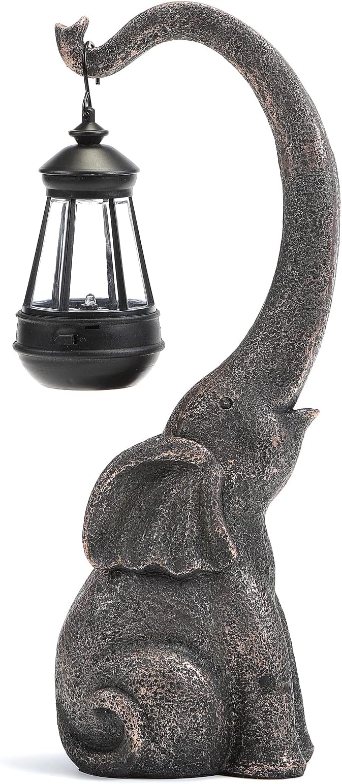 15" Outdoor Sculpture Figurine Statue Elephant Decorations Solar Garden Statues for Patio Home Yard Decor Good Luck Garden Elephant Birthday Gifts for Woman, Mom Family