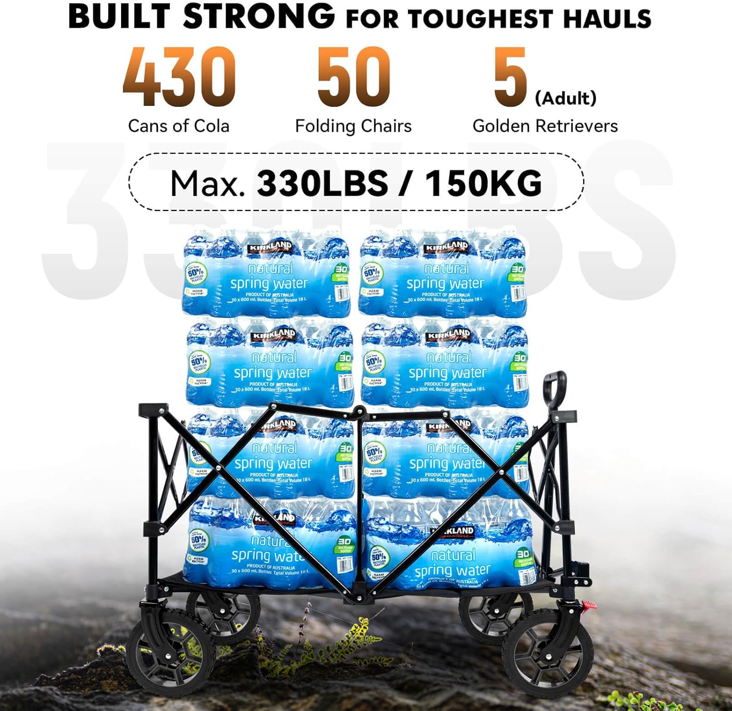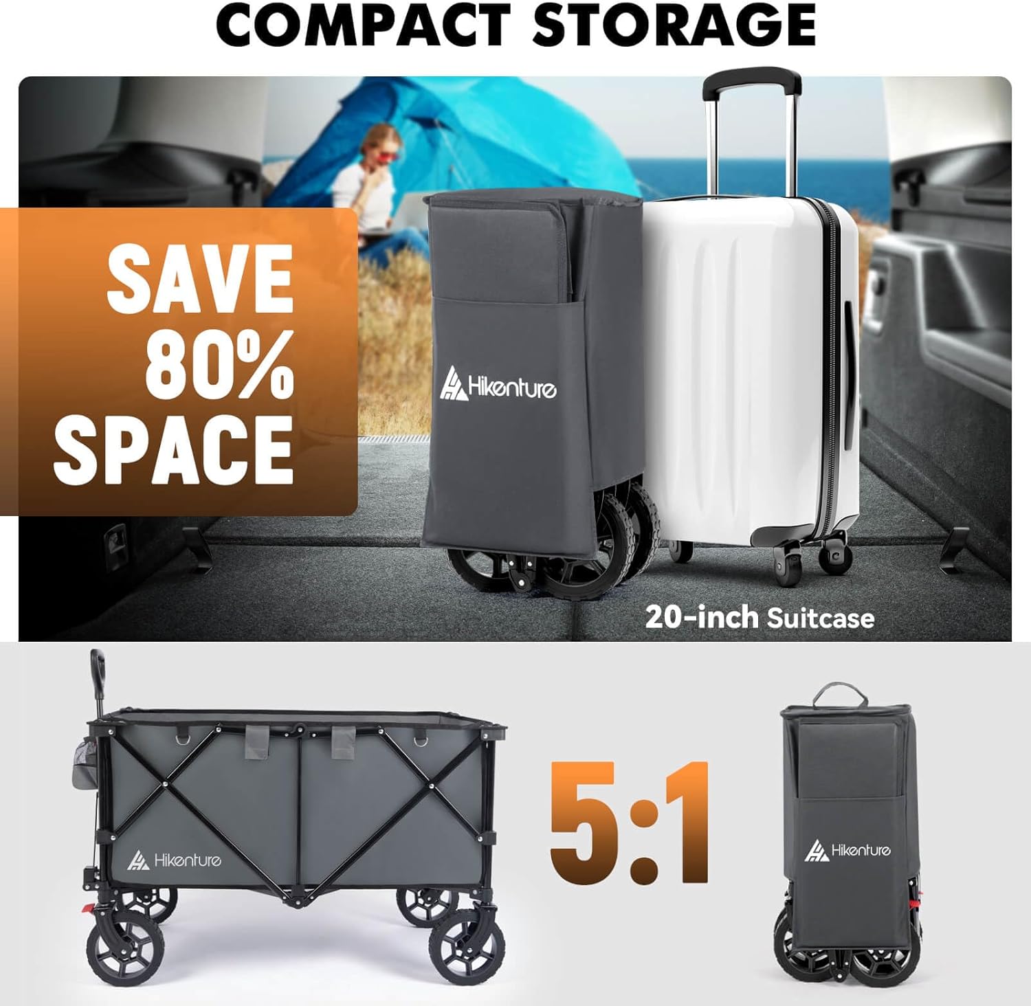 Hikenture Collapsible Wagon - 330LBS Capacity, Extra Large Foldable Wagon with All-Terrain Wheels, Utility Beach Cart for Outdoor Garden