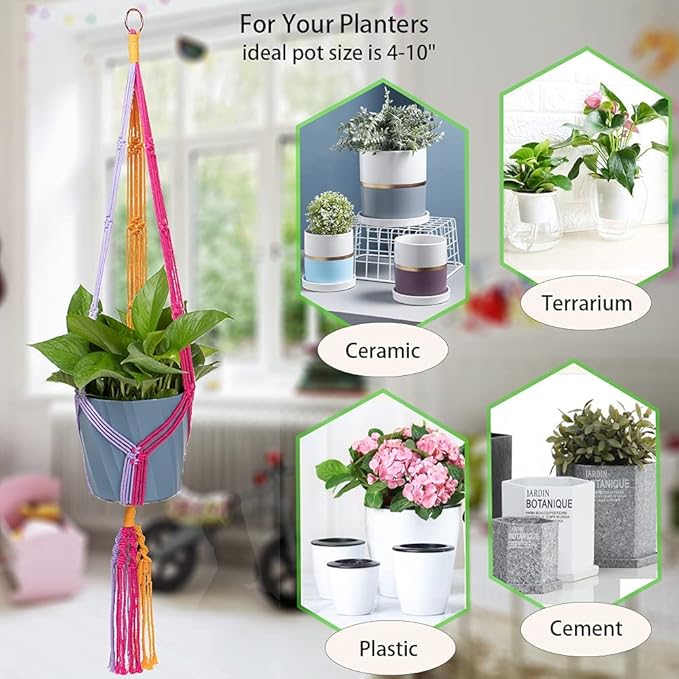 - 【EASY TO HANG IN ANY SPACE】 : The hangers are suitable for indoor and outdoor. Just expand the leg strings, put the plant pot in the middle of the conjunction. It is great for boho home decor, make your life become unique. Hanging plant holder can be used for windows,living room, kitchen,hall,patio,high and low ceiling.
