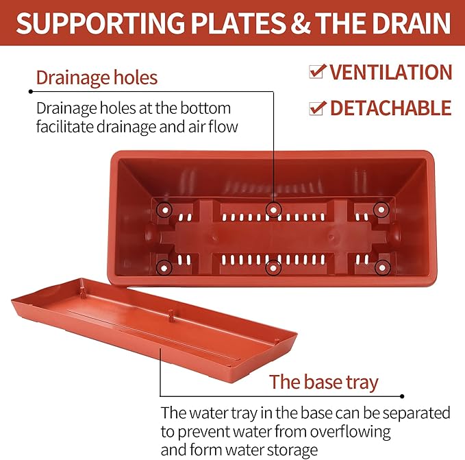 - WINDOW BOX PLANTERS DIMENSIONS - Includes pack rectangular plastic planters. The size of plastic flower planters: L16.6 x W7 x H5.9 inches, large enough to support any projects and ideas. Great for herbs, flowers, foliage, grass, cactus, succulents, ferns, arborvitae and more.