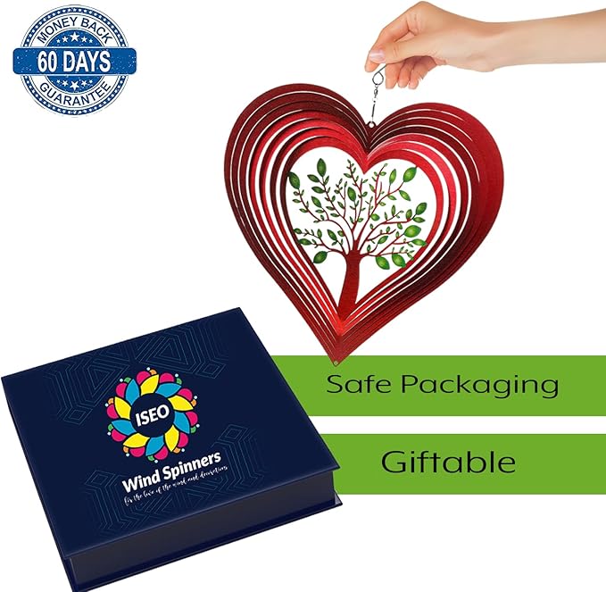 - UNIQUE DESIGN - Our Hearted Tree of life wind spinner has an elegant, stylish, and unique design to make your garden stand out. They create an incredible 3D illusion when the wind blows against them to create a magical sight that will keep you glued outdoors in your garden or porch.