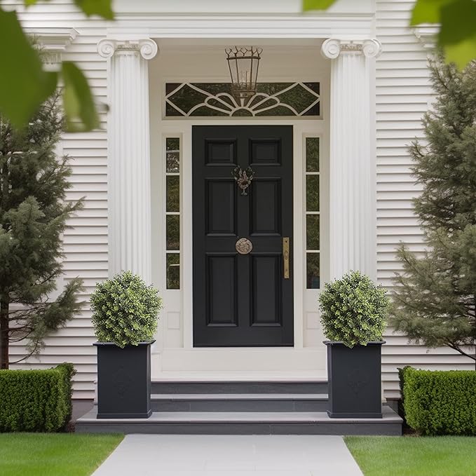 - [Greenly Decoration--boxwood topiary]: You can choose suitable size for decoration in your house. Adding a natural and refreshing look,front door faux plants set of 2 can be used both indoors and outdoors