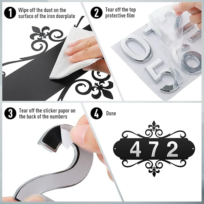 - Weatherproof and anti-rusting: the personalized home address sign is made of quality iron, weatherproof and not easy to deform and break, and mailbox number is made of ABS electroplated plastic; These iron art doorplates and mailbox numbers are reliable, waterproof, and can be applied even in rainy days