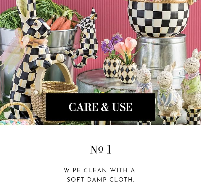 - ELEGANT SPRING & EASTER DECOR: Our Funny Bunny is one curious critter. Hand painted in our signature black-and-white Courtly Check pattern and finished with gilded gold ears, this little guy will hang off the edge of your indoor planters for that extra Easter or spring decor touch.