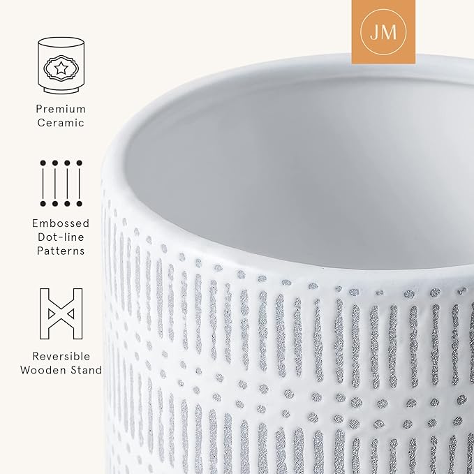 - BOHO HOME DECOR - Enrich your routine life by adding a dash of color with this boho-style ceramic planter with stand. Made of high-fired premium clay and oak wood, finished with the sand glaze and topped by the white dot-line pattern, the planter offers a special rough texture and rustic feel to your living space.