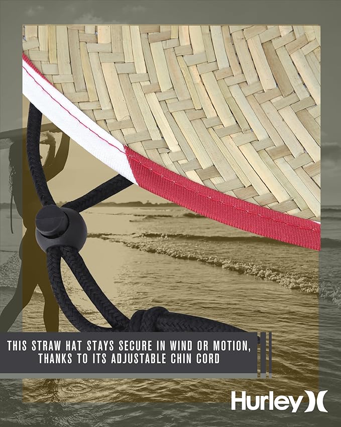 • DURABLE WEAVE PATTERN DESIGN: This Hurley Men's Straw Hat features a classic wide-brimmed design that's crafted from premium woven straw, offering both style and lasting durability. Whether you're relaxing on the beach or standing watch as a lifeguard, this sun hat not only looks great but stands up to the elements, keeping you shaded and cool.