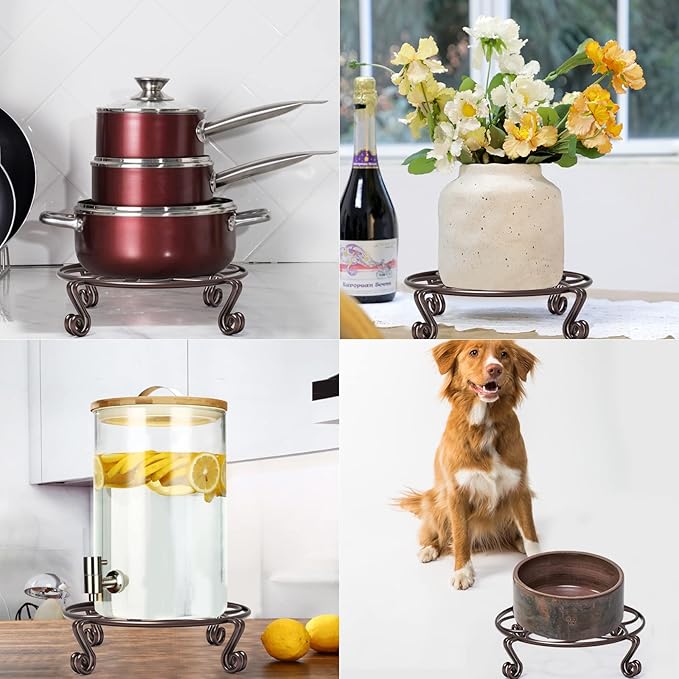 - 【CUTE AND BEAUTIFUL & MULTI-SCENARIO USE】: The round metal plant stand conformation is flowers pattern, cute and beautiful flower pot stand is a decoration itself, display your home beauty. This plant stand have three size ,they diameter are 9.4 Inches, 10.2 Inches, 11.8 Inches,they are suitable for anywhere, indoor and outdoor, garden, balcony, office, kitchen. You can place heavy plants, large potted trees, large vases, whiskey barrels, or heavy trash cans