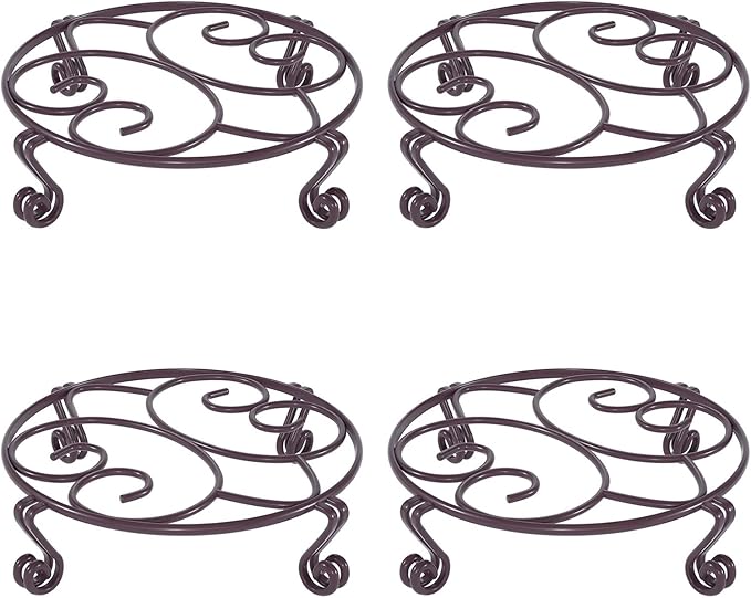 Yimobra 4 Pack Plant Stand for Flower Pot Heavy Duty Potted Holder Indoor Outdoor Metal Rustproof Iron Garden Container Round Supports Rack for Planter (4PC Brown 9.4 x 2 IN)