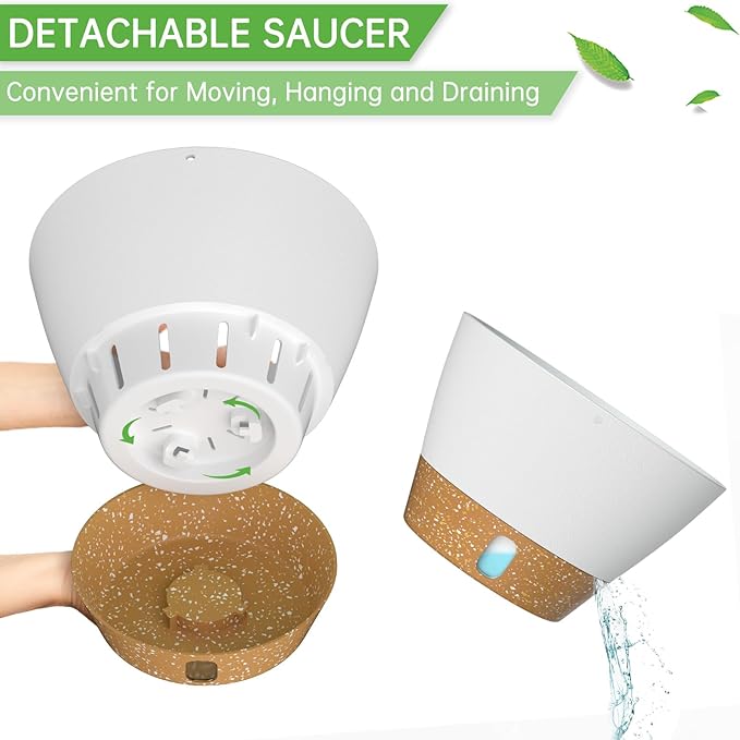 - Snap-in Tray with Visible Water Level: The tray can be removed for easy cleaning of the flower pot. The self-watering flower pot with drainage holes can drain excess water to the tray, so the tray will store an amount of water for the plant(Longer than 7 days). And you can water the plants by looking at the water level.