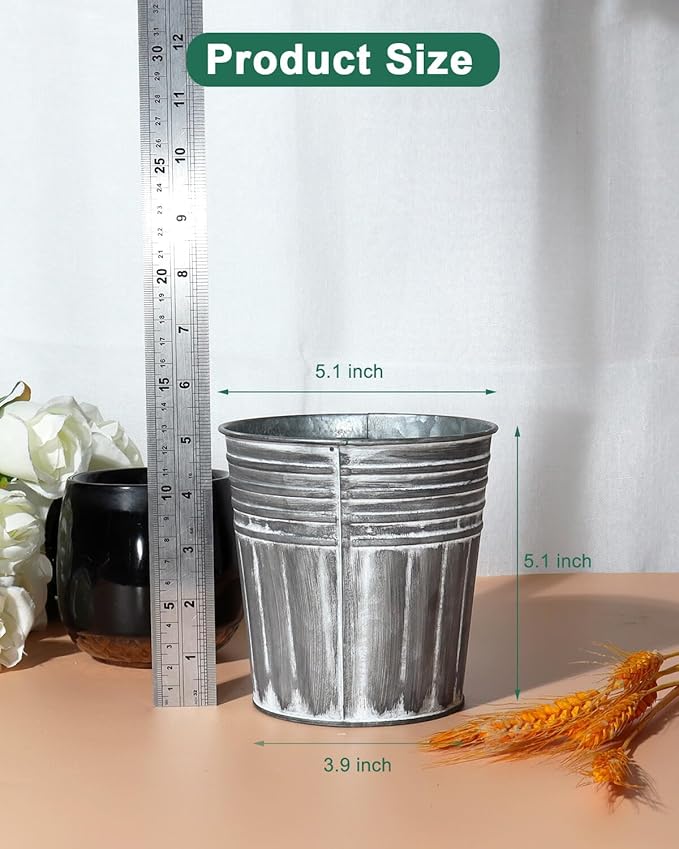 - 【Size of Metal Pots】There are 6pcs metal planters in a package, Topper opening diameter 5.1 inch, bottom diameter 3.9 inch, barrel high 5.1 inch.