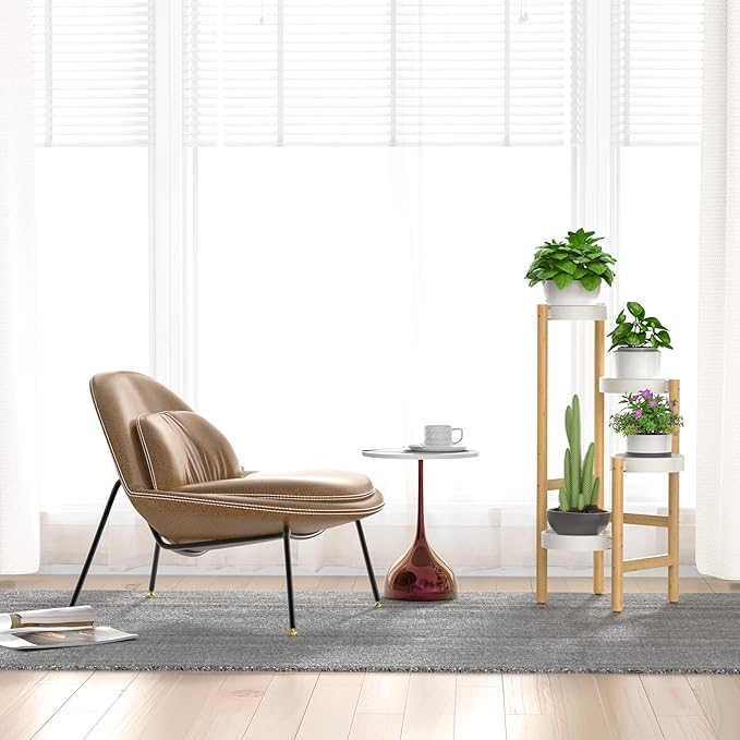 - 🌷【Made of 100% solid bamboo】Especially durable and sturdy. The 3 round plant pots are made of carbon steel, which is more advanced and sturdy than plastic ones, making each circle plate more anti-rust, easy to clean, better bearing.