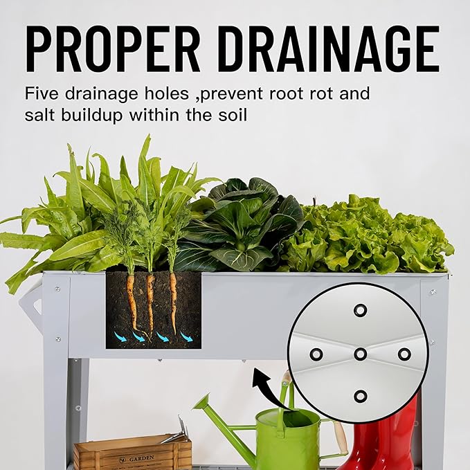 - ใ32" Tall & Detachable Shelfใ No bending! 32โ height reduces knee strain. Extra 37โ shelf holds tools/fertilizer โ no more messy patio.