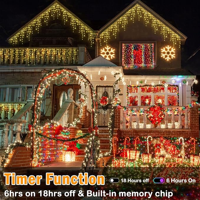 - Waterproof UL Safe to Use: IP44 waterproof grade Christmas decoration string lights are perfect for outdoor use without any damage. Understand any extreme weather, including wind, rain, heavy snow, and hot sun. These super brighter decorations ice lights can be used both indoor and outdoor. Tips: Please note that the US Plug is NOT