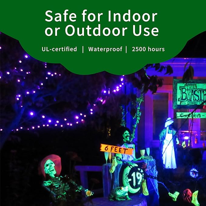 Ultra-Bright Connects End to End Purple Christmas Mini Lights 100L 19.6Ft UL Listed Incandescent Bulb String Light Set for Indoor and Outdoor Halloween Home Garden Party Holiday Tree Decor