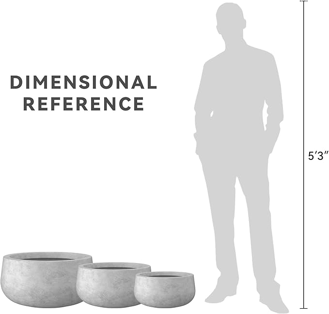 Kante 19.6",15.7",11.8" Dia Round Concrete Planters Set of 3, Outdoor Indoor Garden Plant Pots with Drainage Hole and Rubber Plug, Modern Curvaceous Design, Natural Concrete