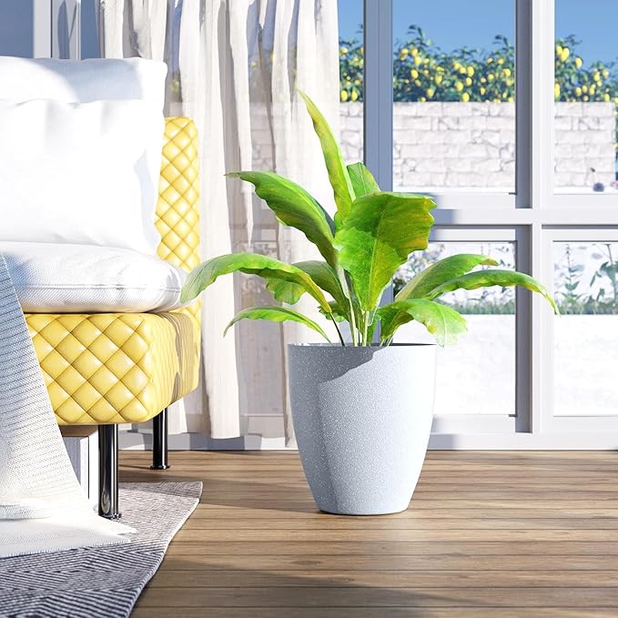 - STURDY & DURABLE: Large plant pot is made of plastic and stone-composite, with 10mm thickened border, lightweight sturdy and durable