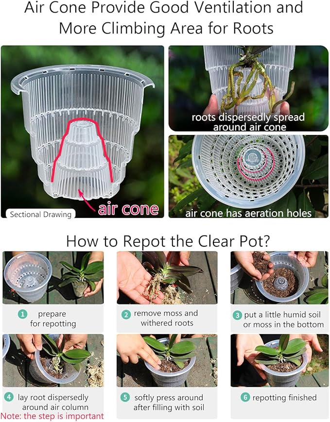 - Set of 2 Orchid Pots: Comes with 2 round 6 inch plastic pots suitable for most orchid species.