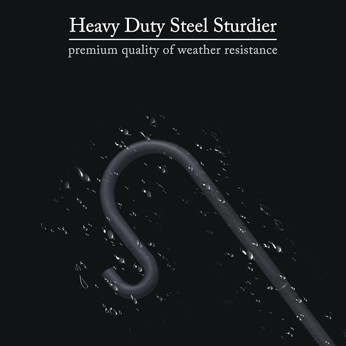 - 【Meet Different Weight You Need】The heavy duty outdoor shepherd hook could bear much more weight than most other like products in the market.We advice not hanging objects weigh over the recommended weight, for the shepherd hook might topple and fall.47inch's weight not over 27lb.