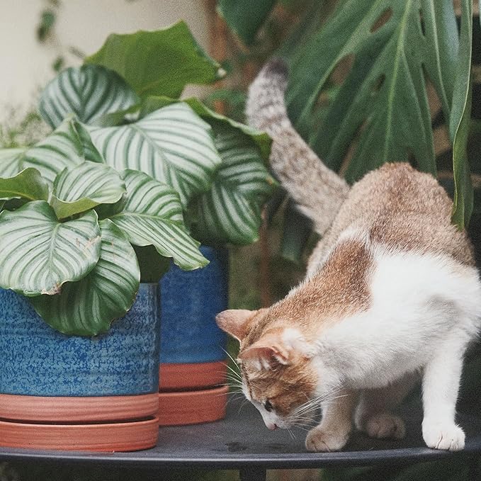 - If you would like to show your beautiful plants as decoration, this terra-cotta & blue pot is a good choice, which is suitable for indoor/outdoor plants. It is made of ceramic with circular patterns and textures, highlighted with reactive glaze. Not only will it bring your plants beauty and charm, but also fully show your fashion sense.